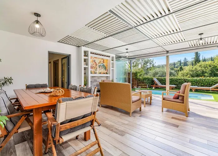 Der Flughafen Korfu ist in 15 Autominuten zu erreichen, und Naturattraktionen wie die das Lazarett von Kontokali sind knapp 4 Kilometer von. Strand Dassia befindet sich nur 19 Fußminuten von der Unterkunft entfernt. Die Bushaltestelle Primavera befindet sich ein paar Schritte entfernt von der Villa.